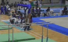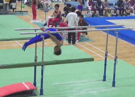 ぶいさんの平行棒、棒下宙がえりはしっかりきまり、けあがりまでつながりました。