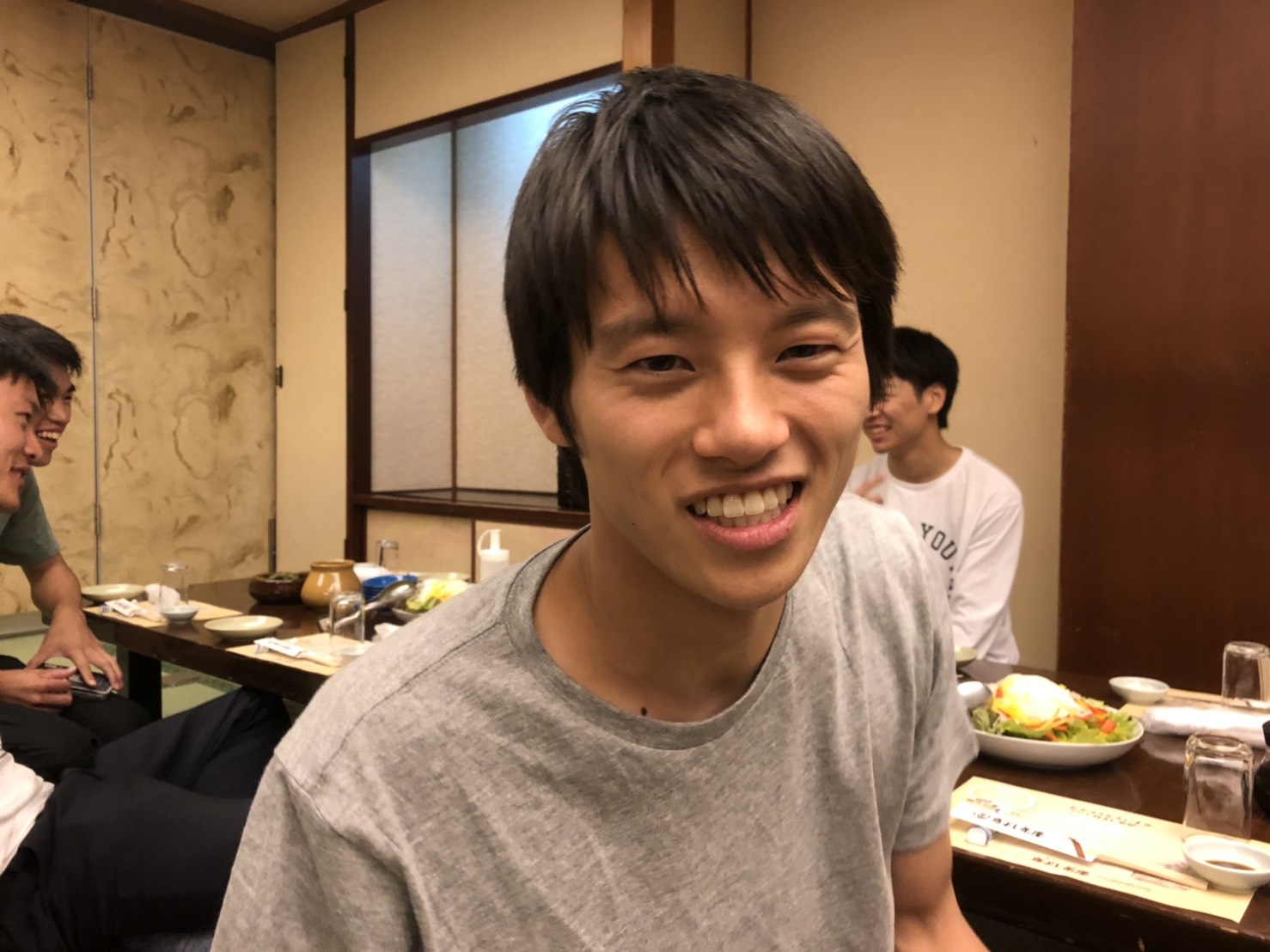 新歓開始直前のわっきーさん。すでにご満悦です。 |